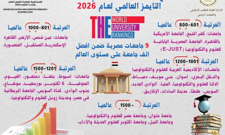 التعليم العالي: إدراج 36 جامعة مصرية في تصنيف التايمز العالمي لعام 2026