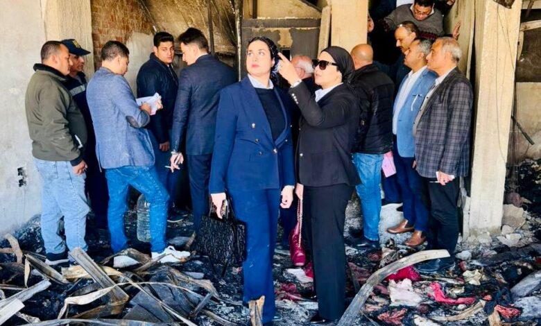 النيابة الإدارية تعاين موقع حريق سوق تجاري المنصورة