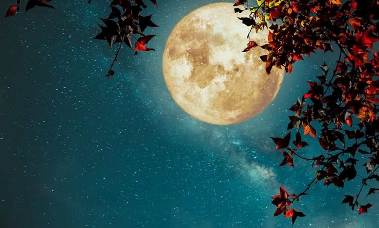 خلال ساعات مشهد سماوي فريد، حيث يظهر “قمر الحصاد” متأخرا