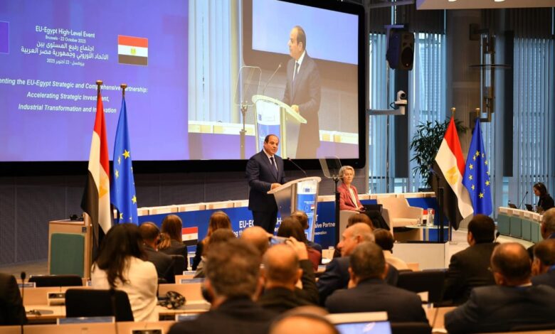 لم يأت هذا الحدث الاقتصادى، وليداً للحظة الراهنة، وإنما جاء امتداداً لمسارٍ متصاعد، بدأ فى مارس ٢٠٢٤، بالإعلان عن قرارنا المشترك، بالارتقاء بمستوى العلاقات بين مصر والاتحاد الأوروبى، إلى مستوى الشراكة الإستراتيجية الشاملة، خلال زيارة رفيعة المستوى إلى القاهرة، للسيدة “أورسولا فون دير لاين”، رئيسة المفوضية الأوروبية، وقادة كل من بلجيكــا وإيطاليـــا واليونــان وقبــرص والنمسـا. وأعقبه مشاركة سيادتها لاحقا، فى افتتاح المؤتمر المصرى الأوروبى الأول للاستثمار، فى يونيو ٢٠٢٤.