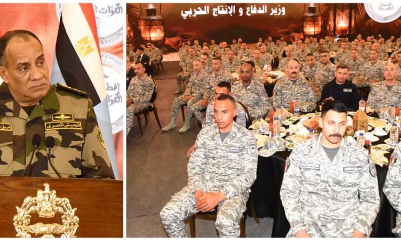وزير الدفاع والإنتاج الحربى يلتقى مقاتلى القوات الجوية ويشاركهم تناول وجبة الإفطار