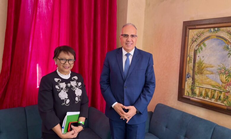 على هامش مشاركة سيادته في فعاليات “الكونجرس العالمى التاسع عشر للمياه” المنعقد بالمملكة المغربية، إلتقى السيد الأستاذ الدكتور/ هانى سويلم وزير الموارد المائية والرى، بالسيدة/ ريتنو مارسودى مبعوثة الأمين العام للأمم المتحدة الخاصة لشئون المياه .