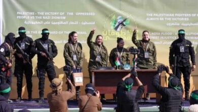 لحظة تسليم حماس الأسيرات الإسرائيليات الـ4 للصليب الأحمر بلباس عسكري