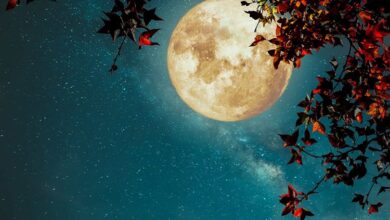 خلال ساعات مشهد سماوي فريد، حيث يظهر “قمر الحصاد” متأخرا