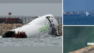 انحراف طائرة شحن عن مدرج المطار في هونج كونج