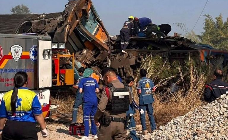 ارتفاع حصيلة ضحايا حادث قطار تايلاند إلى 28 قتيلا و64 مصابا